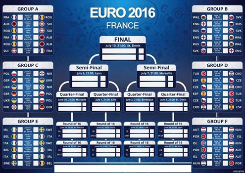 Францын нийслэл Парис хотноо Европын аварга шалгаруулах хөлбөмбөгийн тэмцээн хоёр сарын дараа эхэлнэ. Анх удаа 24 баг оролцох энэхүү тэмцээн эхнээсээ өндөрлөх шат хүртлээ үргэлжлэх тоглолтын хуваарийг албан ёсоор зарлажээ.