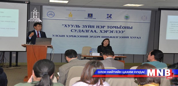 Монгол Улсын Их Сургуулийн Хууль зүйн сургуулийн багш нарын хийсэн судалгаагаар 2008-2015 онд нийт 112 хууль шинээр болон шинэчилсэн найруулгаар батлагдсан байна. Давхардсан тоогоор нийт 481 шинэ хууль зүйн нэр томьёо хуульчлагдсанаас 450 монгол, 31 гадаад нэр томьёо хуульчлагдсан гэдгийг хуралдааны үеэр онцолсон юм.