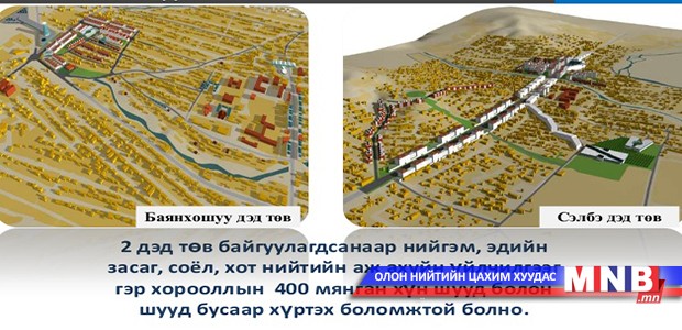 Нийслэлийг 9 дэд төвтэй болгох ажлын санхүүжилтийг АХБ-тай хамтран шийдэж буй юм байна. Сэлбэ, Баянхошуу дэд төвийг 104.5 сая долларын хөнгөлөлттэй зээлээр барьж, байгуулна. 2017 он гэхэд нийслэл хоёр шинэ дэд төвтэй болсноор айл өрхүүд төвийн цахилгаан, цэвэр бохир устай холбогдож, дулааны асуудлаа шийднэ. Энд бизнес эрхлэгчид бүтээн байгуулалтын ажил өрнүүлэх суурь нь тавигдана. Гол нь гэр хорооллын газрын үнэ цэнэ өсөх ач холбогдолтой юм байна. Дэд төвүүдийг барьж байгуулах ажил дууссаны дараа 50 айлын хоёр орон сууцыг ахмадын орон сууц болгон ашиглахаар төлөвлөж байгаа ажээ.