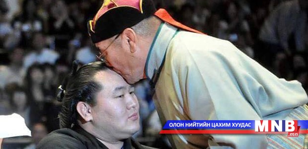 Төрийн наадамд 12 удаа шөвгөрсөн Монгол Улсын манлай заан Д.Долгорсүрэн мэргэжлийн сүмогийн 68 дахь их аварга Асашёорюү Дагвадорж хүүгээ зодог тайлах ёслолын үед духыг нь ийнхүү үнэрлэж байв.
