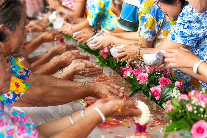 Уламжлалын дагуу Сонгран наадмыг тэмдэглэгчид шинэ ондоо аз жаргалтай, цог хийморьтой байхыг ерөөн залбирч, Буддын шашны хөшөө, бурхны баримлууд болон сүм хийдүүдийг усаар угаадаг. Үүнээс гадна тус улсын ард иргэд гудамж талбайд гарч, өөр хоорондоо усаар байлддаг нь жуулчдын дунд Сонгкран наадам алдарших гол шалтгаан болсон юм. Гэвч энэ онд Тайландын олон бүс нутагт ган гачиг болж байгаатай холбогдуулан тус улсын засгийн газар усанд ариг гамтай хандахыг иргэддээ уриалжээ.
