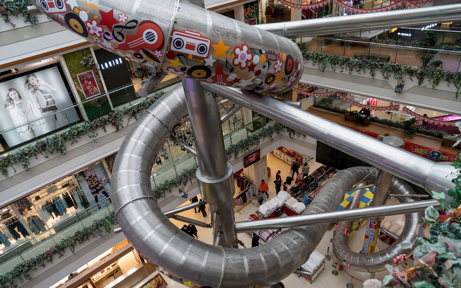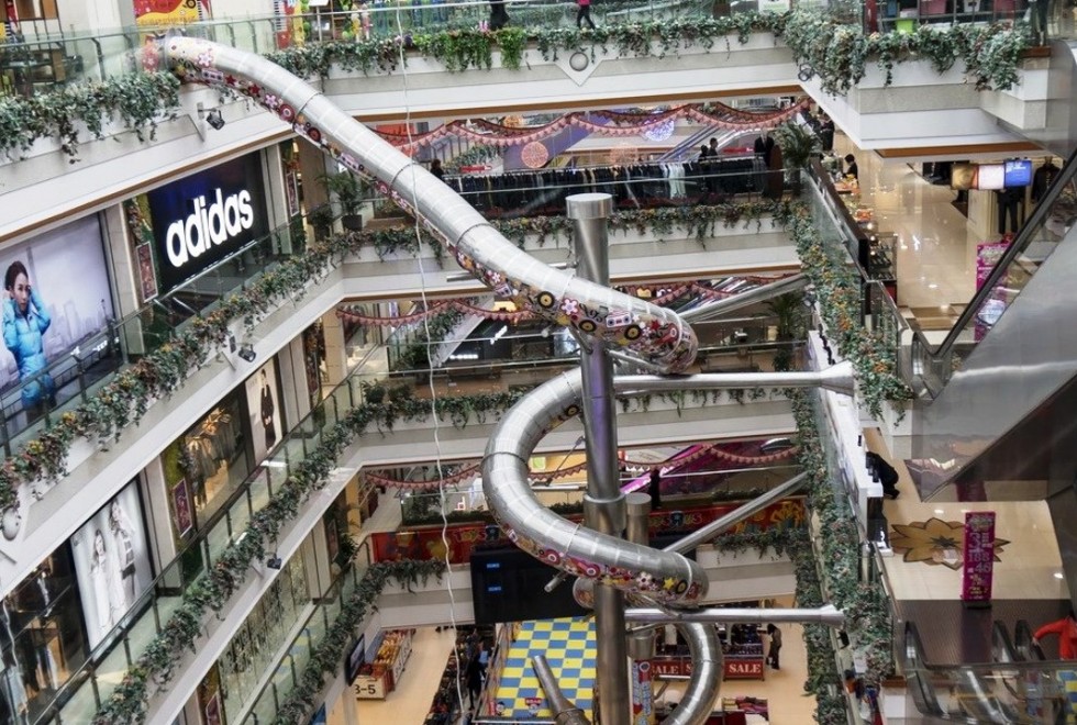 Хятадын Шанхай хотын “Нью Уорлд” их дэлгүүр үйлчлүүлэгчдийг өөртөө татах хачирхалтай санаа сэдэж, аварга том гулгуур ашиглалтад орууллаа. Дэлгүүрийн тавдугаар давхраас доош татсан энэ гулгуурын тусламжтайгаар нэгдүгээр давхар руу 16 секундын дотор буух боломжтой. 20 метр өндрөөс доош үргэлжлэх 54 метр урттай энэ аварга гулгуураа Шанхайн их дэлгүүр “Жаргалтай гулгуур” гэж нэрлэсэн байна. Гэхдээ гулгуурыг харсан үйлчлүүлэгчдэд нэн түрүүн төрдөг сэтгэгдэл нь аз жаргал гэхээсээ илүүтэй айдас, догдлол гэнэ.