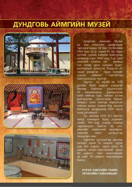Дундговь аймгийн музейн лого болох морь барьж буй чонын дүрс бүхий хүрэл үзмэр нь түүх, соёлын үнэт зэрэглэлд бүртгэгдсэн байдаг аж.