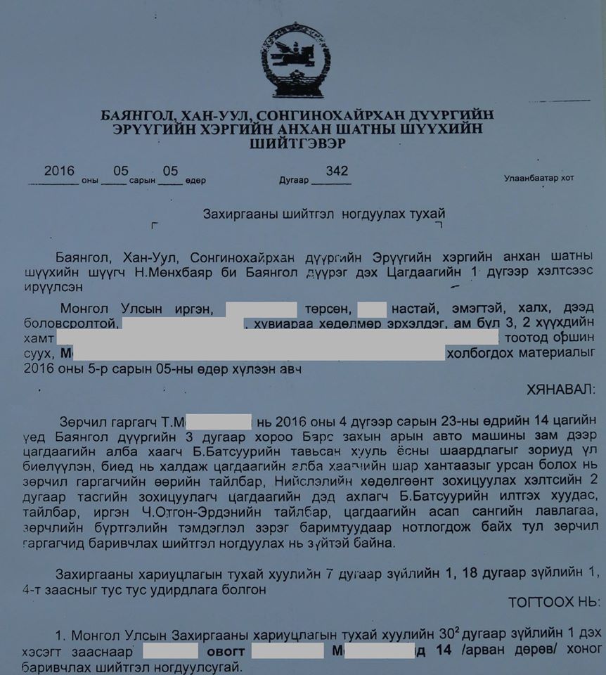 Тайлбарт "Дэд ахлагч н.Батсуурийн хууль ёсны шаардлагыг зориуд үл биелүүлэн, биед нь халдсан "М"-ийг Баянгол, Хан-Уул, Сонгинохайрхан дүүргийн анхан шатны шүүхээр 14 хоног баривчлах шийтгэл оногдуулсан" гэжээ.