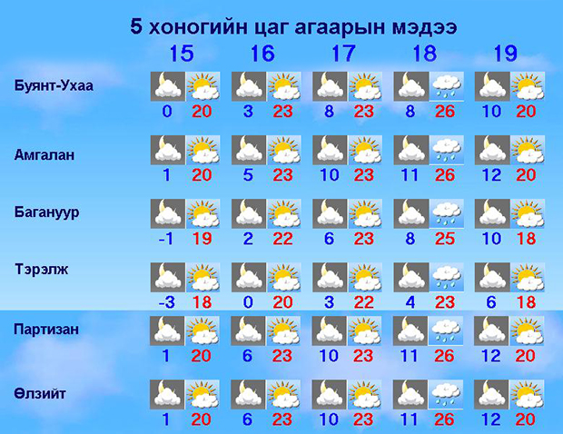 | Нийслэлийн цаг агаарын 7 хоногийн урьдчилсан мэдээ | ||