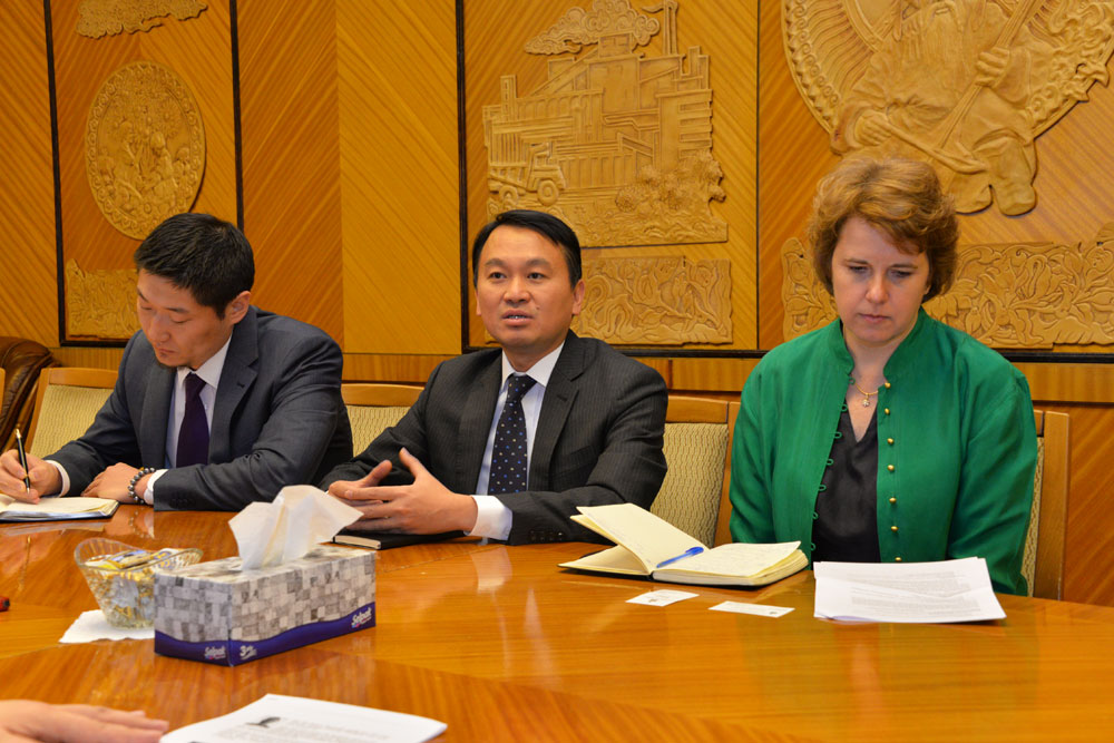 Уулзалтын эхэнд ноён Туен Нгуен, цаг гарган хүлээн авч уулзсанд талархал илэрхийлэв. Тэрээр, Олон улсын санхүүгийн корпораци нь Монгол Улсад 10 гаруй жил үйл ажиллагаа явуулахдаа санхүүгийн салбарт олон төсөл, хөтөлбөр хэрэгжүүлж ирснийг дурдав. Тус корпораци анх 1999 онд арилжааны банкинд дэмжлэг үзүүлэн хамтын ажиллагаагаа эхлүүлж байсан бол одоо санхүүгийн салбарыг хамарсан том төслүүдийг хамтран хэрэгжүүлж байгаа юм. Ноён Туен Нгуен хэлэхдээ, манай байгууллагын үйл ажиллагааны гол зорилго бол эдийн засгийг дэмжих, ялангуяа жижиг, дунд бизнесийн санхүүжилт авах боломжийг нэмэгдүүлэх, ингэснээр ажлын байрыг нэмэгдүүлж, үүгээрээ эдийн засагт хувь нэмэр оруулах юм. Дэлхийн банк, Олон улсын санхүүгийн корпорацийн Санхүү ба зах зээл хөтөлбөрийн Ази, Номхон далайн бүс хариуцсан захирал Женнифер Исерн анх удаа Монгол Улсад ирээд байна. Тэрээр бүс нутаг дахь хөгжиж буй орнуудад санхүүгийн салбарын бодлошо, санхүүгийн дэд бүтцийг хөгжүүлэх, жижиг, дунд бизнесийн санхүүгийн хүртээмжийг нэмэгдүүлэх зэрэг чиглэлээр олон төсөл, хөтөлбөрийг хэрэгжүүлэх ажлыг удирдан явуулдаг. Өнгөрсөн хугацаанд Дэлхийн банк, Олон улсын санхүүгийн корпораци Улсын Их Хурлын холбогдох байнгын хороотой хамтран Хөдлөх хөрөнгө барьцаалсан зээлийн харилцааг хөгжүүлэх төслийг хэрэгжүүлсэн. Төсөл амжилттай хэрэгжсэн бөгөөд Та бүхэнд талархаж буйгаа илэрхийлмээр байна. Нөгөөтэйгүүр, цаашдын хамтын ажиллагаа, хэрэгжүүлж буй төсөл, хөтөлбөрүүдийнхээ талаар санал солилцох хүсэлтэй байна хэмээлээ.
