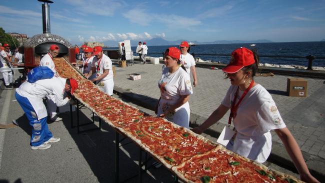 Пиццаны эх орон Итали улсын тогооч нар дэлхийн шинэ дээд амжилт тогтоожээ. Нийтдээ 100 гаруй тогооч Италийн баруун өмнөд хэсэгт оршдог Неаполь хотноо цугларч, түүхэн дэх хамгийн урт пиццаны амжилтыг шинэчлэн тогтоосон байна. Энэ амжилт хялбархан олдоогүй гэдгийг оролцогчид төдийгүй ажиглагчид хэлж байгаа юм. 1 км 853 метр урттай пиццаг хийхэд 400 гаруй тогоочийн 11 цагийн хөлс хөдөлмөр орсон байна.
