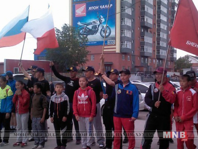 Хоёр жил тутамд зохиогддог олон улсын энхийн буухиа гүйлтийн галт бамбар Дорнод, Сүхбаатар, Хэнтий, Төв аймгийн нутгаар буухиалан зургаадугаар сарын 11-ний өдөр Улаанбаатарт ирсэн. Харин хоёр хоногийн өмнө тус бамбарыг Үндэсний цэцэрлэгт хүрээлэн, Монгол бөхийн өргөө, УИД-ийн өмнөх талбай, Төмөр замын Соёлын ордон, Саппоро зэрэг газар, харьяа дүүргийн төлөөлөл болон Биеийн тамирын спортын хороод дамжуулсан юм. Улаанбаатар хотод болсон буухиа гүйлтийн бамбарын хаалтыг 22-ын товчоонд хийж, дараагийн орон нутгийн буухиад шилжүүлжээ.