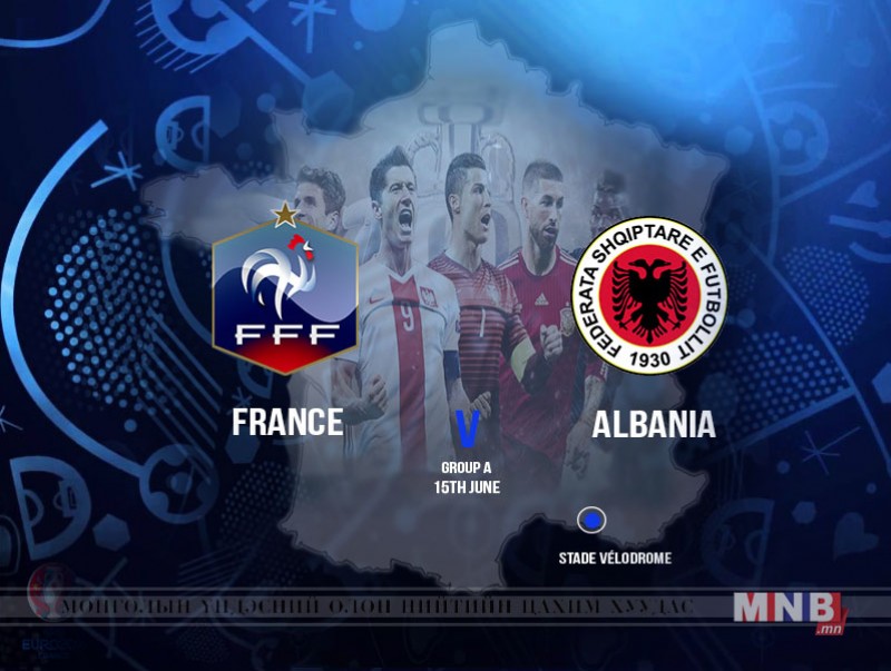Европын хөл бөмбөгийн аварга шалгаруулах "ЕВРО 2016" тэмцээний хоёрдугаар тойргийн гурав дахь тоглолт буюу Франц-Албанийн шигшээ багуудын тоглолтыг шууд дамжуулж байна.