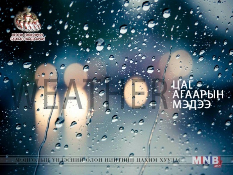 УЛААНБААТАР ХОТ: Үүлэрхэг. Бороо орно. Дуу цахилгаантай. Салхи хойноос секундэд 5-10 метр, зарим үед секундэд 12-14 метр хүрч ширүүснэ. Сэрүүсч 20-22 хэм дулаан байна.