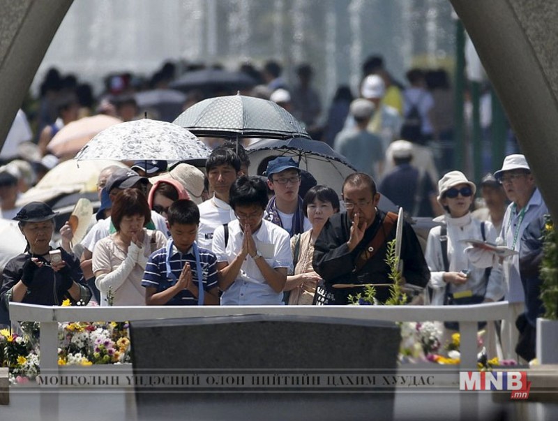 Өчигдөр Японы Хирошима хотод 71 жилийн өмнө тус хотод атомын бөмбөг хаясны уршгаар амиа алдсан хүмүүсийн дурсгалыг хүндэтгэх ёслол болов. Хирошима хотын энх тайвны цэцэрлэгт хүрээлэнд болсон энэ ёслолд Японы Ерөнхий сайд, засгийн газрын гишүүд, дэлхийн 91 орны төлөөлөл гээд нийтдээ 50 мянган хүн оролцлоо. Тэдний дотор НҮБ, Европын Холбооны төлөөлөгчид ч байсан байна.