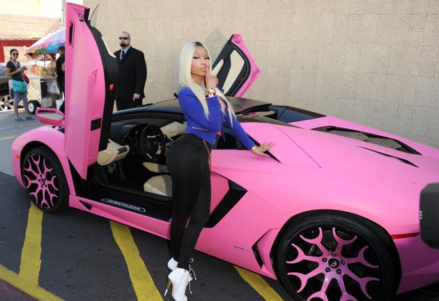 Рэппэр Ники Минаж "Kmart"–ийн загварын брэндийн нээлтэн дээр олны нүдийг булаасан ягаан өнгийн "Lamborghini Aventador" машинаараа иржээ. 400.000 ам.долларын үнэтэй энэ машин нь түүний Bentley Continental, Range Rover зэрэг мөн л ягаан өнгөтэй, тансаг төмөр хүлгүүдийн тоог нэгээр нэмж байна. Минаж 2 хоногийн өмнө хөх өнгөтэй Lamborghini –гийнхоо зургийг Instagram дээрээ тавьж байсан ч түүнийгээ өөрийн брэнд өнгө болох ягаанаар будахаар шийджээ.