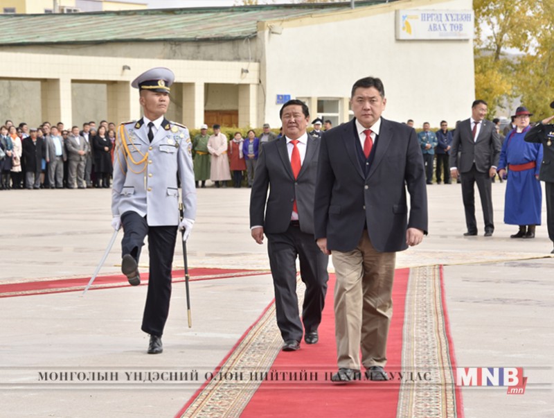 УИХ-ын даргыг аймгийн төв талбайд ЗХЖШ-ын 339 дүгээр ангийн хүндэт харуул угтан авч хүндэтгэл үзүүллээ. Энэ үеэр аймгийн удирдлагууд болон иргэд, хөдөлмөрчдийн төлөөлөл байлцсан юм.