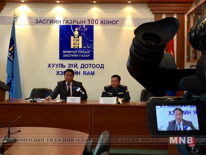 Засгийн газрын 100 хоногийн хүрээнд Хууль зүй, дотоод хэргийн яамны харьяа агентлагуудын төлөөлөл өнгөрсөн хугацаанд хийсэн онцлох ажлуудаа танилцуулж байна. Энэ хүрээнд Гадаадын иргэн харьяатын газрын дарга Д.Мөрөн, ХХЕГ-ын Захиргааны удирдлага эрхэлсэн орлогч дарга, хурандаа Ж.Бямбасүрэн нар өнөөдөр Хууль зүй, дотоод хэргийн яамны хурлын танхимд мэдээлэл хийлээ.