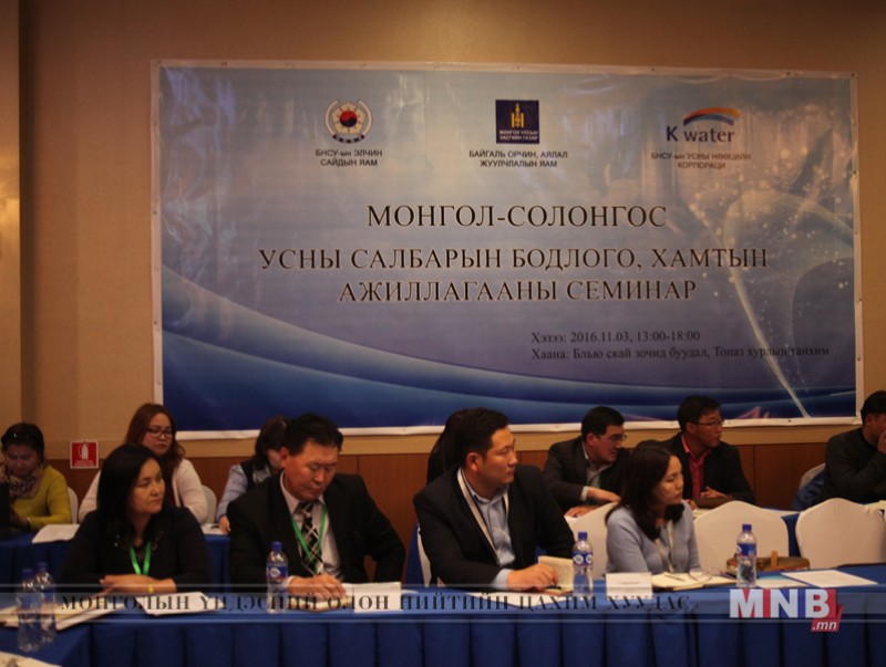 Монгол орны усны нөөцийн асуудлыг шийдвэрлэх, усны салбарт хамтран ажиллах тухай санал санаачлага гаргах, хоёр орны Засгийн газрын бодлогыг хуваалцах, хоёр улсын хооронд усны нөөцийн талаарх хамтын ажиллагааны сүлжээг бий болгох зорилгоор БОАЖЯ, БНСУ-ын Элчин сайдын яам, БНСУ-ын усны нөөцийн “K-water” корпораци хамтран “Монгол- Солонгос усны салбарын бодлого болон хамтын ажиллагаа” сэдэвт семнарыг зохион байгууллаа.